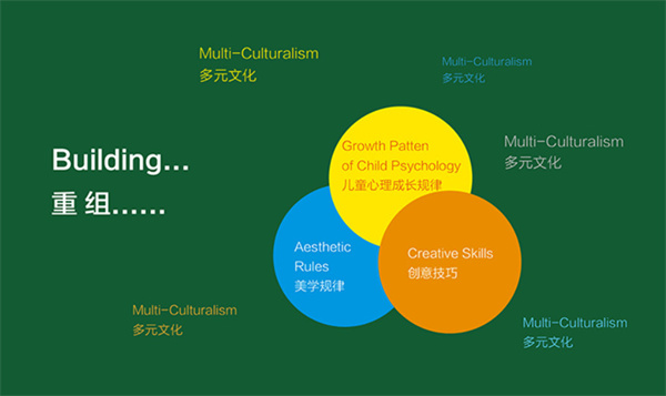 我们使用四种营养元素:儿童心理成长规律、美学规律、创意技巧、多元文化。