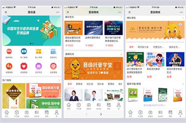 晋级学员人脸识别签到打卡系统,晋级通视频直播系统、音频收听系统、资料下载系统,晋级托管学堂学员管理系统、员工管理系统、财务管理系统。