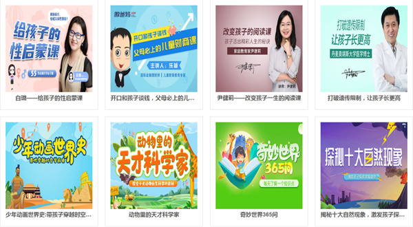 围绕家庭教育、母婴育儿、早期教育、夫妻关系、女性成长、学科提升、亲子课程、健康理财等领域,开创全新的父母提升、孩子学习教育板块,打造多维课程体系,覆盖全学科。